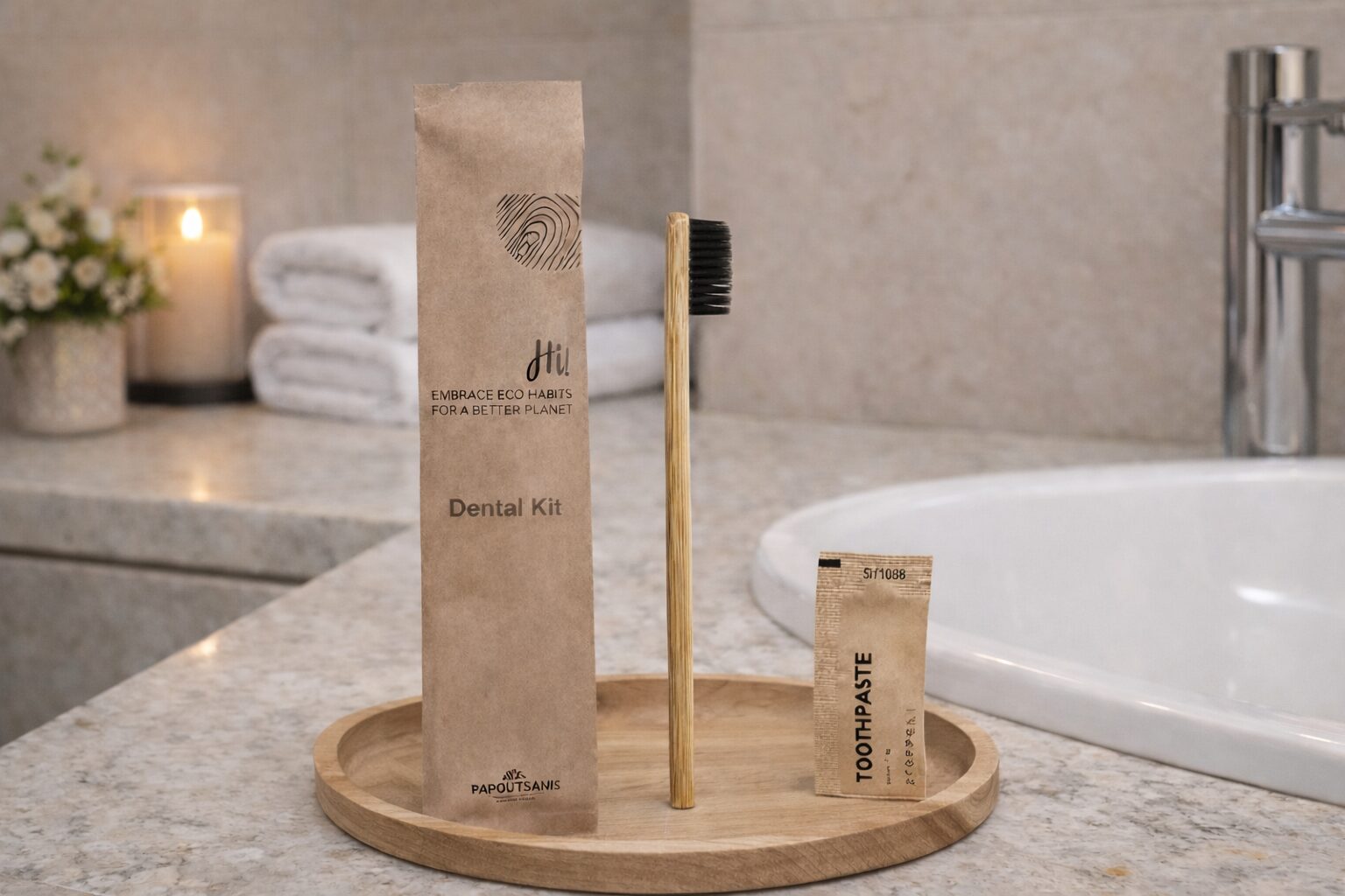 Kit dental de bambú para hoteles en bolsita papel kraft