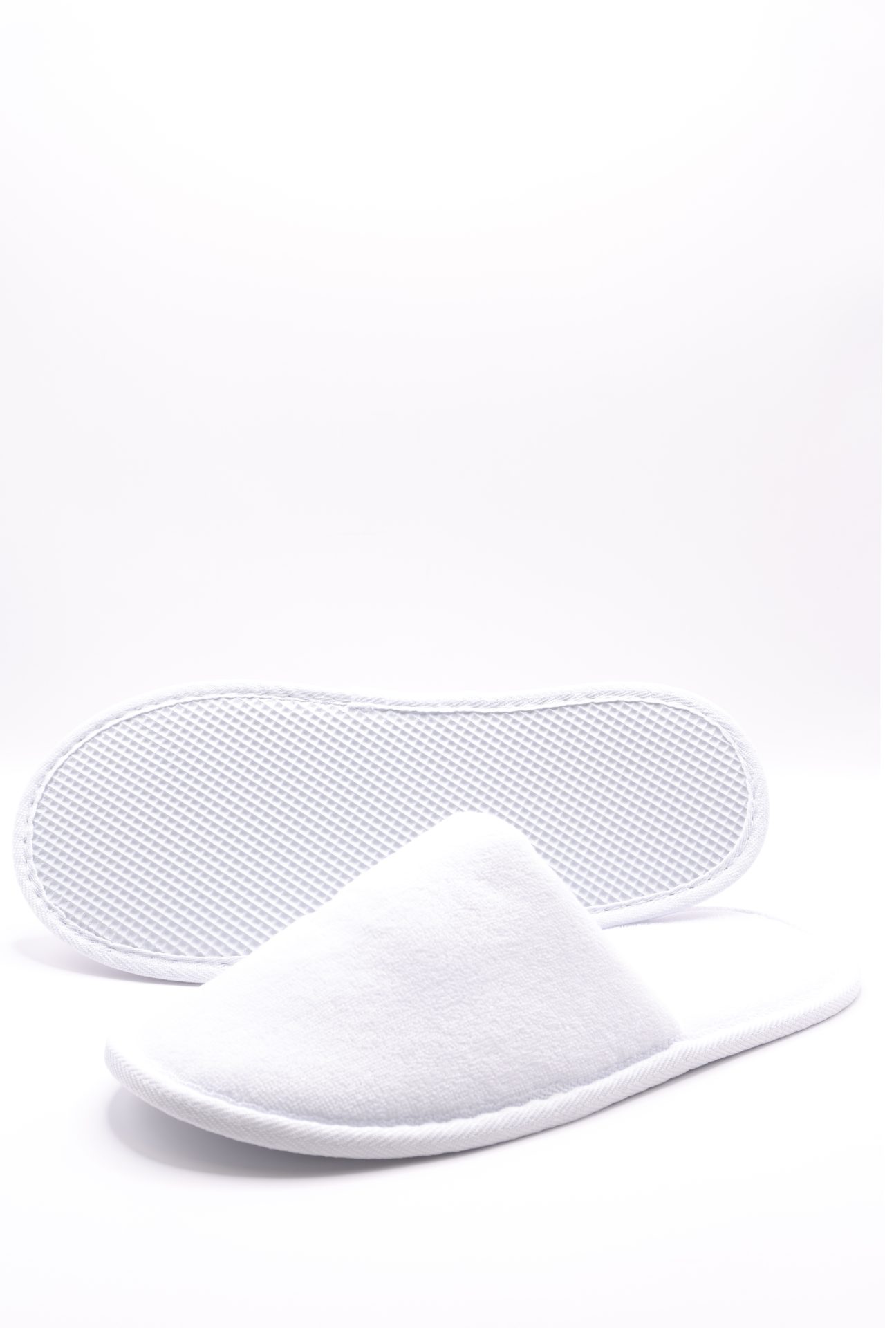 Zapatilla de hotel para habitación cerrada en tejido terry modelo 305 y con banda de papel kraft ecologica.